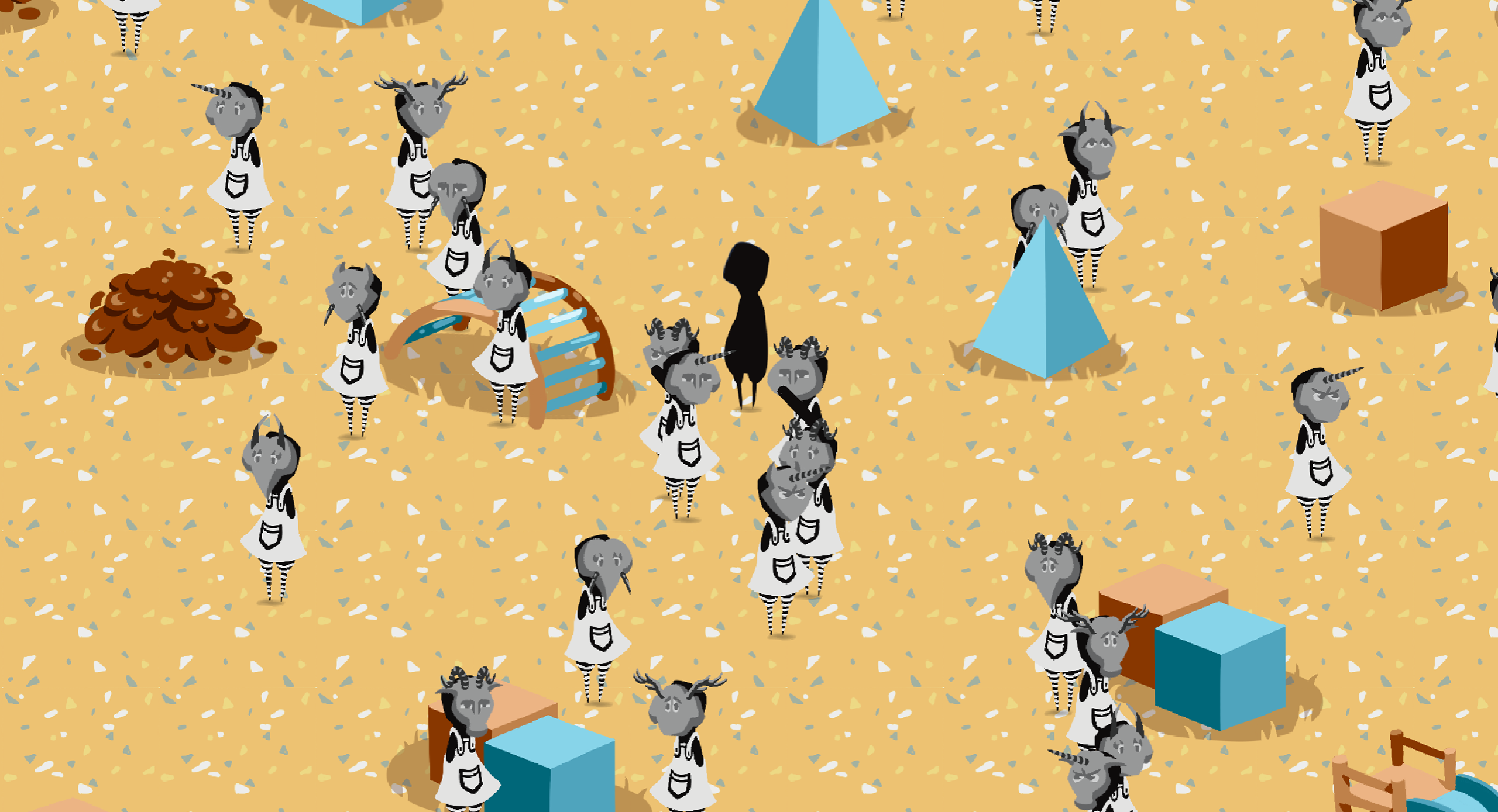 A short game about self-discovery, here you need to search for the right person but how can you recognize them without a face. A mask is something you create, is it just a front or something that you learn about you?